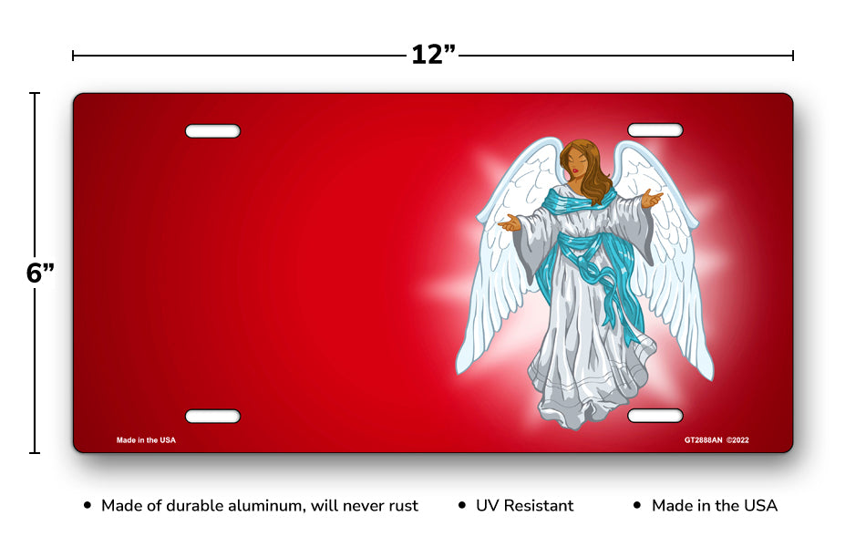 Dark Skin Angel on Red Offset License Plate