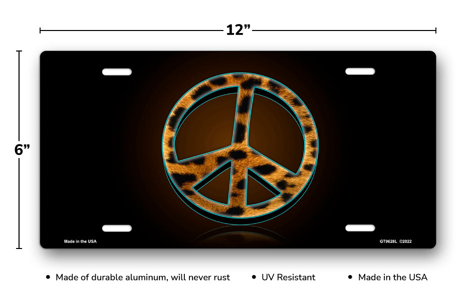 Leopard Peace on Black License Plate