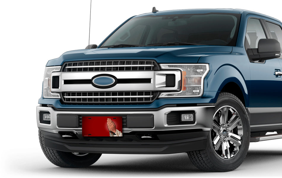 Praying Hands on Burgundy License Plate
